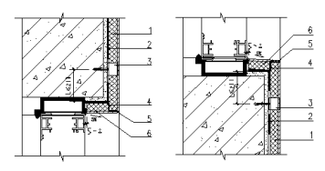 ͼ7.4.3 ÍâÖÃÃÅ´°¶´¿Ú²¿Î»½á¹¹×ö·¨ 1¡ª¡ªÇ½Ãæ±£ÎÂ×°Êΰ壻2¡ª¡ª½ºÕ³¼Á£»3¡ª¡ªÃª¹Ì¼þ£»4¡ª¡ª½ºÕ³¼Á£»5¡ª¡ªÃܷ⽺£»6¡ª¡ª×°ÊÎÃæ°å 6.5.4 ÖÐÖÃÃÅ´°¶´¿Ú²¿Î»½á¹¹×ö·¨¼ûͼ7.4.4£¬Ê©¹¤ÒªµãÈçÏ£º 1 ÖÐÖÃÃÅ´°¶´¿ÚÖÜΧǽÌå²àÃæÓ¦×°Öñ£ÎÂ×°Êΰ壬±£ÎÂÖÊÁϺñ¶È²»Ó¦Ð¡ÓÚ20mm£» 2 ±£ÎÂ×°Êΰå¿É½ÓÄÉ90¡ãѹ±ß·¨»ò45¡ã¶Ô½Ç·¨×°Ö㬾ùÓ¦ÏÈ×°ÖÃÇ½Ãæ±£ÎÂ×°Êΰ壬ÔÙ×°ÖòàÃæ±£ÎÂ×°Êΰ壻 3 Ó¦Êʵ±ÔöÌíÖÐÖÃÃÅ´°¶´¿Ú²¿Î»Ç½Ãæ±£ÎÂ×°ÊΰåÕ³ÌùÃæ»ý±È£¬ÃÅ´°¶¥¡¢´°Ì¨Ç½Ãæ±£ÎÂ×°ÊΰåÓ¦×óÓÒÀο¿£¬ÃÅ´°±ßÇ½Ãæ±£ÎÂ×°ÊΰåÓ¦ÉÏÏÂÀο¿£¬Ãª¹Ì¼þ¾àÀëǽ½Ç±ßÑØ²»Ó¦´óÓÚ200mm£¬Ç½Ãæ±£ÎÂ×°ÊΰåÆäËû±ßê¹Ì¼þ¿Éƾ֤ÇéÐÎÉèÖã» 4 ²àÃæ±£ÎÂ×°ÊΰåÓ¦ÂúÕ³£¬ÃÅ´°¶¥¡¢´°Ì¨²àÃæ×°ÊÎÃæ°å¾ùÓ¦ÐγÉÏòϲ»Ð¡ÓÚ5¡ãµÄÆÂ¶È£¬²àÃæ±£ÎÂ×°ÊΰåÓ¦ÓëÇ½Ãæ±£ÎÂ×°ÊΰåÃæ°åµ×²¿Ïà½Ó´¥£¬±£ÎÂÖÊÁϲ»µÃ¶³ö£¬²àÃæ±£ÎÂ×°ÊΰåÓëÃÅ´°¿ò¼ä϶ӦΪ5mm¡«8mm£» 5 ²àÃæ±£ÎÂ×°ÊΰåÓëÃÅ´°¿ò¼ä϶ӦʹÓÃǶ·ìÖÊÁÏÌîÈûºó£¬ÔÙʹÓÃÃܷ⽺ÃÜ·â¡£Ç½Ãæ±£ÎÂ×°ÊΰåÓë²àÃæ±£ÎÂ×°Êΰ嶥½Ç´¦Ó¦Ê¹ÓÃÃܷ⽺ÃÜ·â¡£