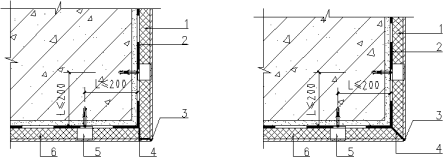6.4.3 ±£ÎÂ×°Êΰ屣ÎÂÖÊÁϼä°å·ì¿í¶È²»ÒËÁè¼Ý10mm¡£ 6.4 Ö÷Òª½Úµã½á¹¹ 6.5.1 Ñô½Ç²¿Î»±£ÎÂ×°Êΰå¿É½ÓÄÉ90¡ãѹ±ß·¨»ò45¡ã¶Ô½Ç·¨×°Ö㬽ṹ×ö·¨¼ûͼ7.4.1£¬Ê©¹¤ÒªµãÈçÏ£º 1 Ðè´¦Öóͷ£µÄ±£ÎÂ×°Êΰå½öÈ¥³ý±ß²¿±£ÎÂÖÊÁÏ£¬Ó¦Ê¹ÓÃÏàÒ˵Ļú¾ß£¬È¥³ý²¿·ÖÓ¦³ß´ç¡¢½Ç¶È׼ȷ£» 2 90¡ãѹ±ß·¨Ó¦ÏÈ×°ÖÃÍêÕûµÄ±£ÎÂ×°ÊΰåA£¬ÔÙ×°ÖÃÈ¥³ý±ß²¿±£ÎÂÖÊÁϵı£ÎÂ×°ÊΰåB£» 3 Ñô½Ç²¿Î»±£ÎÂ×°Êΰå¾àǽ½Ç200mm¹æÄ£ÄÚÓ¦ÂúÕ³¡£ 4 ºó×°Öõı£ÎÂ×°ÊΰåÕ³Ìùʱ£¬ÓëÁíÒ»²à±£ÎÂ×°Êΰå½Ó·ì²¿Î»ÒËͿĨ½ºÕ³¼Á£¬Í¿Ä¨Á¿ÒÔ²»ÁôåÐңΪÒË£» 5 ±£ÎÂ×°ÊΰåÓ¦Óë±£ÎÂ×°ÊΰåÃæ°åµ×²¿Ïà½Ó´¥£¬±£ÎÂÖÊÁϲ»µÃ¶³ö£» 6 ±£ÎÂ×°ÊΰåÓ¦ÉÏÏÂÀο¿£¬Ãª¹Ì¼þ¾àÀëǽ½Ç±ßÑØ²»Ó¦´óÓÚ200mm£¬±£ÎÂ×°Êΰå²à̻̾¹Ì¼þ¿Éƾ֤ÇéÐÎÉèÖã» 7 Á½²à±£ÎÂ×°Êΰ嶥½Ç´¦Ó¦Ê¹ÓÃÃܷ⽺Ãܷ⣻ 8 Ñô½Ç²¿Î»Ò²¿É½ÓÄÉLÐÍÖÆÆ·±£ÎÂ×°Êΰ塣 a£©90¡ãѹ±ß·¨ b£©45¡ã¶Ô½Ç·¨ ͼ7.4.1 Ñô½Ç²¿Î»½á¹¹×÷·¨ 1¡ª¡ª±£ÎÂ×°ÊΰåA£»2¡ª¡ª½ºÕ³¼Á£»3¡ª¡ªÃܷ⽺£»4¡ª¡ª½ºÕ³¼Á£»5¡ª¡ªÃª¹Ì¼þ£»6¡ª¡ª±£ÎÂ×°ÊΰåB 6.5.2 Òõ½Ç²¿Î»±£ÎÂ×°Êΰå½á¹¹×ö·¨¼ûͼ7.4.2£¬Ê©¹¤ÒªµãÈçÏ£º 1 Ó¦ÏÈ×°Öñ£ÎÂ×°ÊΰåA£¬ÔÙ×°Öñ£ÎÂ×°ÊΰåB£¬½ÓÄÉ´î½Ó·¨×°Öã» 2 Á½²à±£ÎÂ×°ÊΰåÎó²î¿í¶ÈÒËΪ5mm¡«8mm£» 3 Ó¦Êʵ±ÔöÌíÒõ½Ç²¿Î»±£ÎÂ×°ÊΰåÕ³ÌùÃæ»ý±È£¬±£ÎÂ×°ÊΰåÓ¦ÉÏÏÂÀο¿£» 4 ±£ÎÂ×°Êΰå²à̻̾¹Ì¼þ¿Éƾ֤ÇéÐÎÉèÖã» 5 Á½²à±£ÎÂ×°ÊΰåÎó²îӦʹÓÃǶ·ìÖÊÁÏÌîÈûºó£¬ÔÙʹÓÃÃܷ⽺ÃÜ·â¡£ 6 Òõ½Ç²¿Î»Ò²¿É½ÓÄÉLÐÍÖÆÆ·±£ÎÂ×°Êΰ塣 ͼ7.4.2 Òõ½Ç²¿Î»½á¹¹×ö·¨ 1¡ª¡ª±£ÎÂ×°ÊΰåA£»2¡ª¡ª½ºÕ³¼Á£»3¡ª¡ªÃܷ⽺£»4¡ª¡ªÃª¹Ì¼þ£»5¡ª¡ª±£ÎÂ×°ÊΰåB 6.5.3 ÍâÖÃÃÅ´°¶´¿Ú²¿Î»½á¹¹×ö·¨¼ûͼ7.4.3£¬Ê©¹¤ÒªµãÈçÏ£º 1 Ó¦Êʵ±ÔöÌíÍâÖÃÃÅ´°¶´¿Ú²¿Î»Ç½Ãæ±£ÎÂ×°ÊΰåÕ³ÌùÃæ»ý±È£¬Ç½Ãæ±£ÎÂ×°ÊΰåÓ¦ÊÊÁ¿Éì³öÍâǽ±ßÑØ£» 2 ÃÅ´°¶¥¡¢´°Ì¨Ç½Ãæ±£ÎÂ×°ÊΰåÓ¦×óÓÒÀο¿£¬ÃÅ´°±ßÇ½Ãæ±£ÎÂ×°ÊΰåÓ¦ÉÏÏÂÀο¿£¬Ãª¹Ì¼þ¾àÀëǽ½Ç±ßÑØ²»Ó¦´óÓÚ200mm£¬Ç½Ãæ±£ÎÂ×°ÊΰåÆäËû±ßê¹Ì¼þ¿Éƾ֤ÇéÐÎÉèÖã» 3 Ç½Ãæ±£ÎÂ×°Êΰå²àÃæÓ¦Õ³Ìùͬ²ÄÖʵÄ×°ÊÎÃæ°å£¬×°ÊÎÃæ°åÓ¦ÂúÕ³£¬ÃÅ´°¶¥¡¢´°Ì¨×°ÊÎÃæ°å¾ùÓ¦ÐγÉÏòϲ»Ð¡ÓÚ5%µÄÆÂ¶È£» 4 ×°ÊÎÃæ°åÓ¦ÓëÇ½Ãæ±£ÎÂ×°ÊΰåÃæ°åµ×²¿Ïà½Ó´¥£¬±£ÎÂÖÊÁϲ»µÃ¶³ö£¬×°ÊÎÃæ°åÓëÃÅ´°¿ò¼ä϶ӦΪ5mm¡«8mm£» 5 ×°ÊÎÃæ°åÓë´°¿ò¼ä϶¡¢ÓëÇ½Ãæ±£ÎÂ×°Êΰ嶥½Ç´¦¾ùӦʹÓÃÃܷ⽺ÃÜ·â¡£